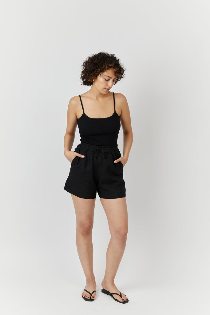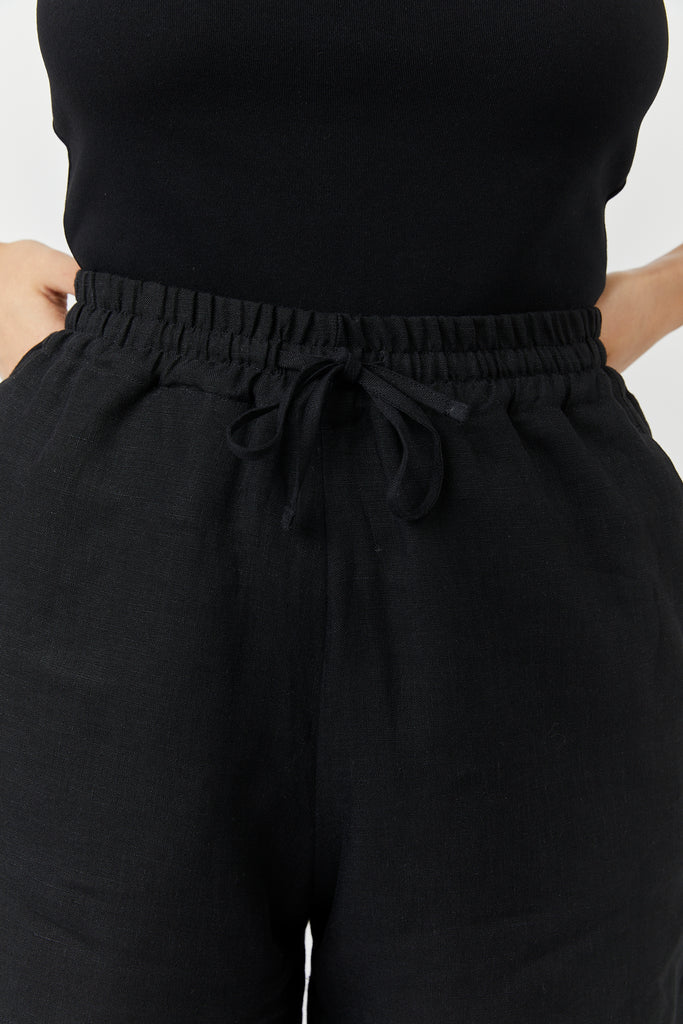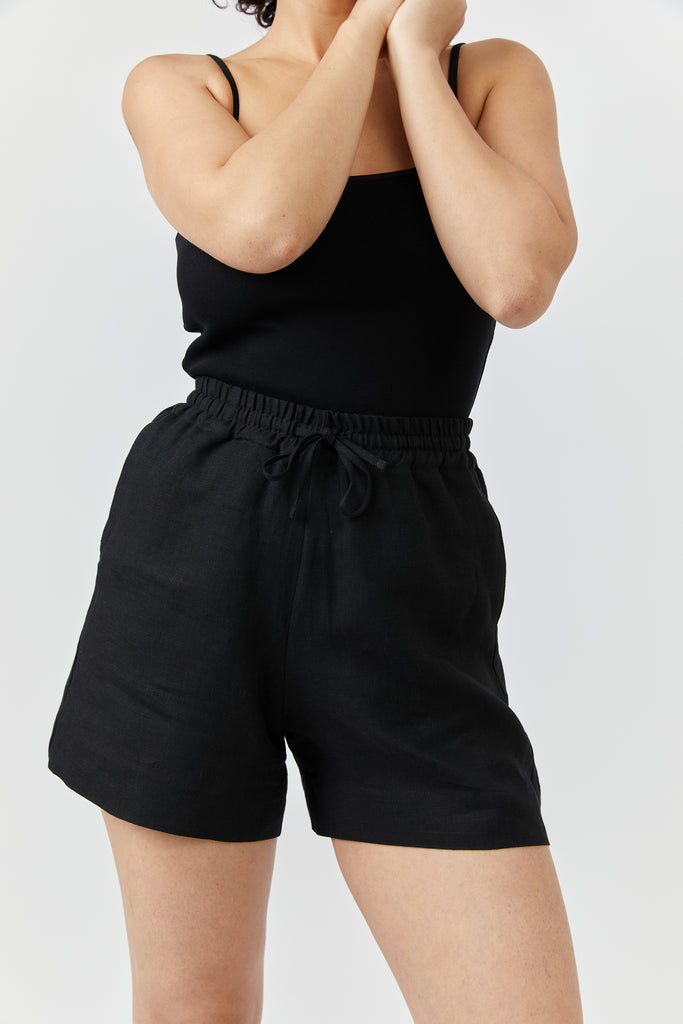 These premium shorts crafted from Belgian Linen™ feature an elastic waistband and drawstring for a stylish, comfortable fit. Two side seam pockets add a practical touch. Perfect for a day at the beach or any casual gathering, these linen drawstring shorts will become your go-to  for those warm summer days.