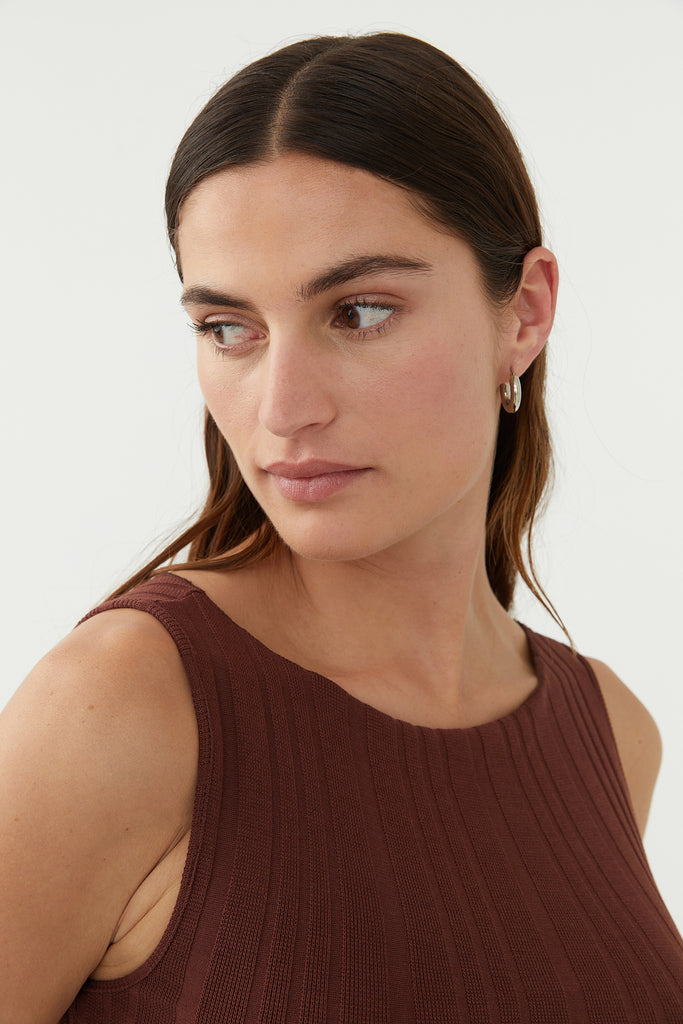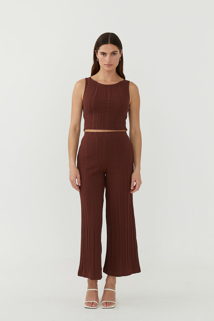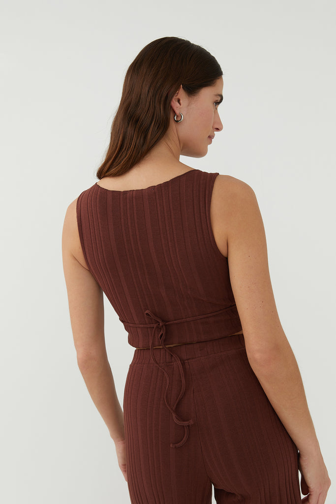 Elevate your summer wardrobe with our Wide Rib Crop Top made from organic cotton for a breathable feel. Its slim fit and stretchy fabric ensure comfort and a flattering silhouette. The boat neckline and bra-friendly design offer versatility, while the adjustable back ties allow for a custom fit. The wide rib texture and pearl merrow seams bring a touch of sophistication and distinctiveness to this summer staple. Complete the look with our Wide Rib Culotte.