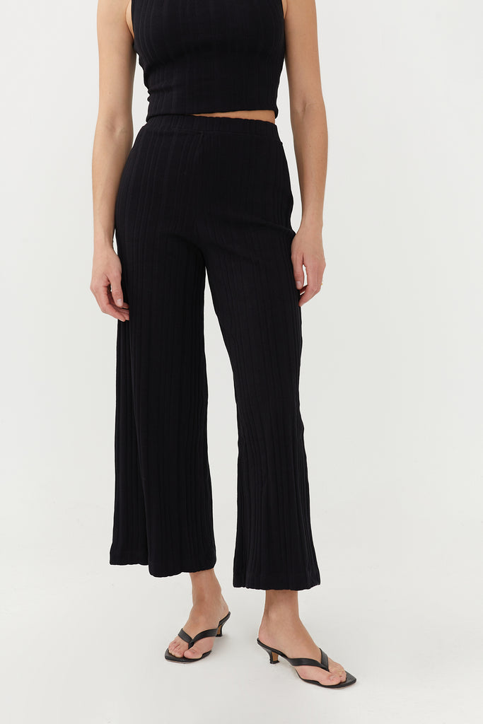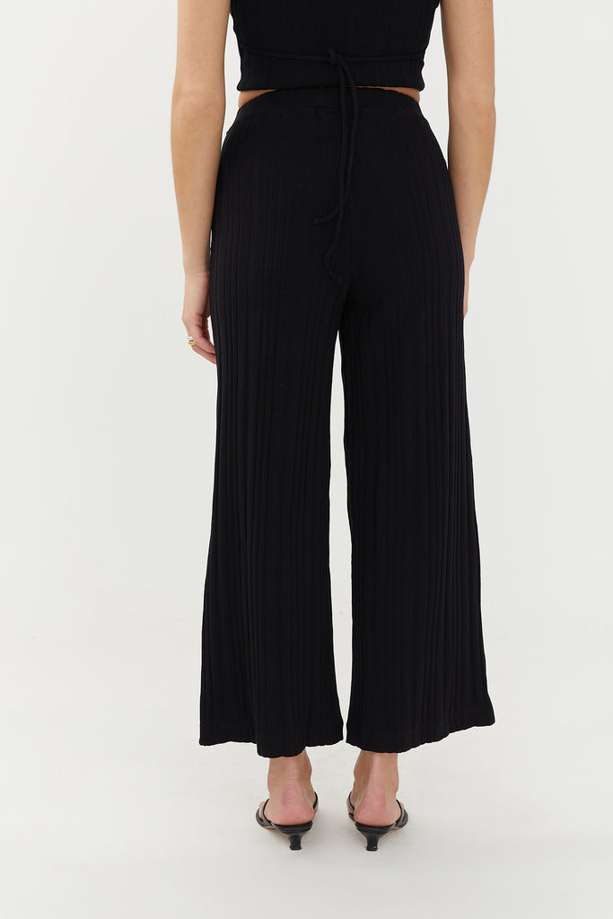 Introducing our Wide Rib Culotte, made from organic cotton for a breathable feel. These culotte-style pants feature a sustainable elastic waistband, made in Austria, for a comfortable yet secure fit. The ankle-length cut is versatile for dressing up or down, and the distinctive wide rib texture makes these culottes a standout piece for any wardrobe. Complete the look with our Wide Rib Crop Top.