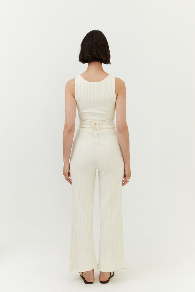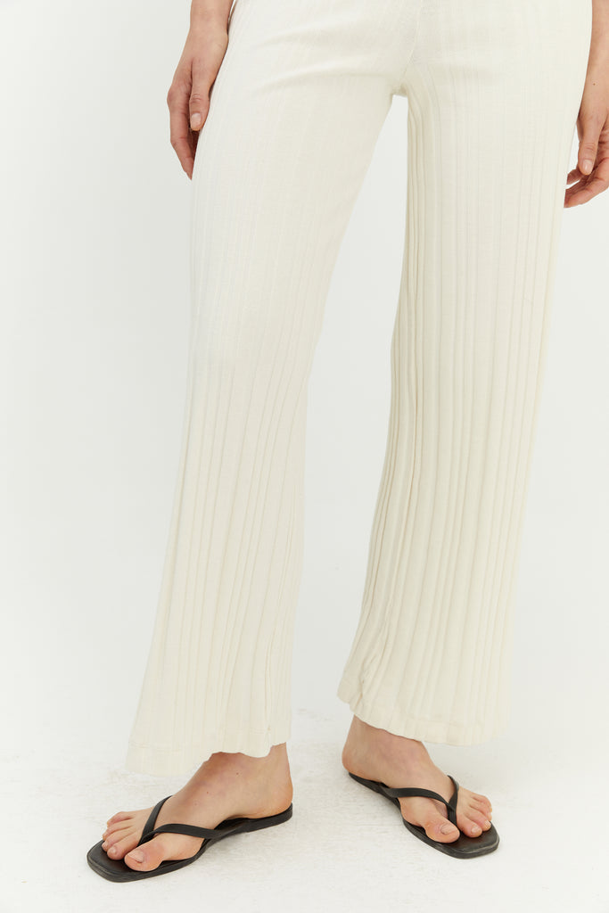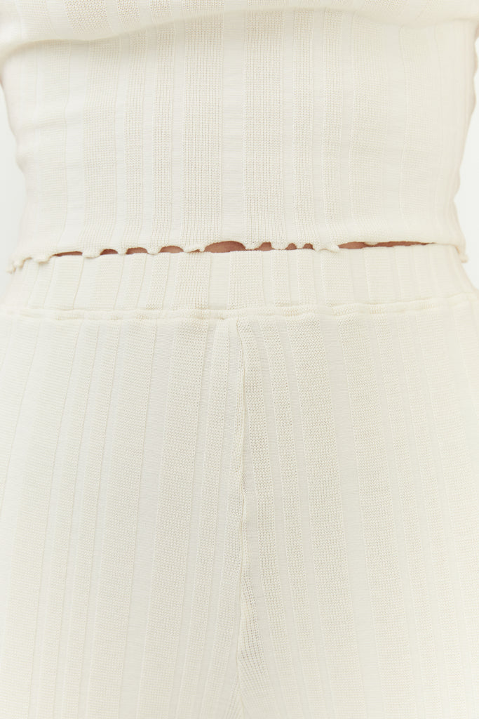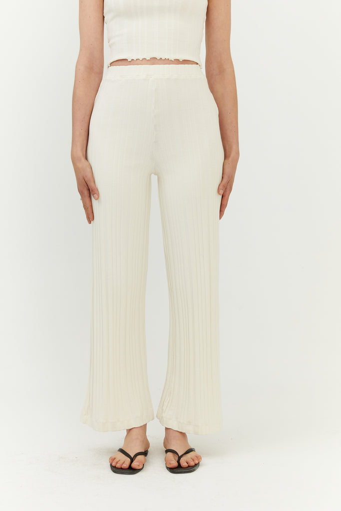 Introducing our Wide Rib Culotte, made from organic cotton for a breathable feel. These culotte-style pants feature a sustainable elastic waistband, made in Austria, for a comfortable yet secure fit. The ankle-length cut is versatile for dressing up or down, and the distinctive wide rib texture makes these culottes a standout piece for any wardrobe. Complete the look with our Wide Rib Crop Top.
