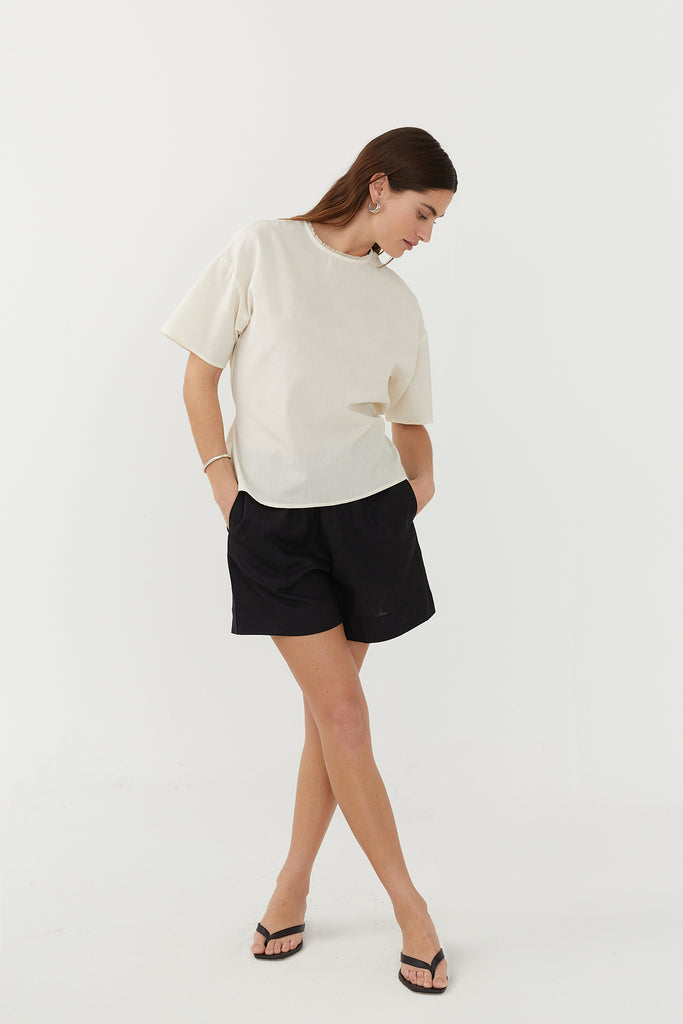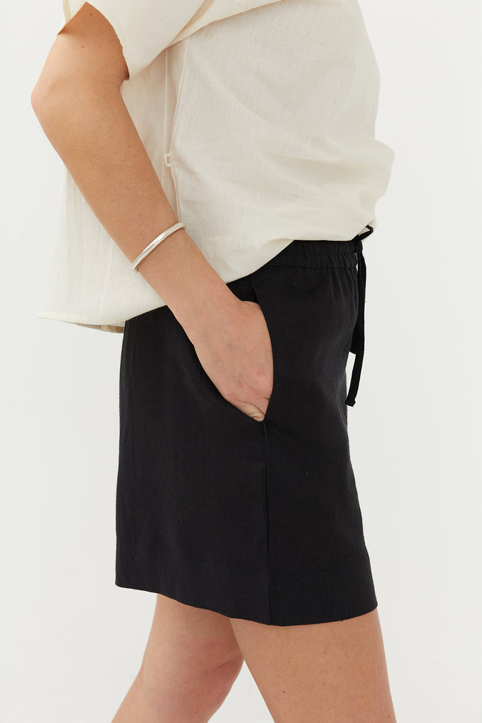 Your new favorite for warm weather. Ethically made in India, our Drawstring Shorts are crafted from a blend of hemp and Tencel for a unique texture and subtle shine. The elasticated waistband with adjustable drawstrings ensure a customizable fit, and the breathable fabric keeps you cool all day long. A true summer staple!