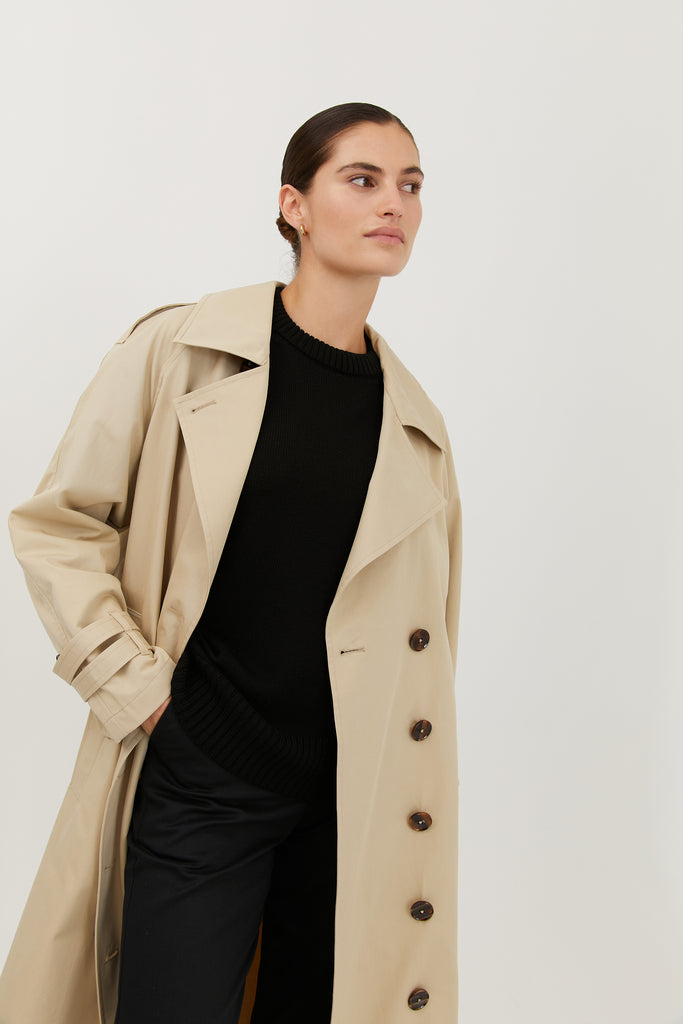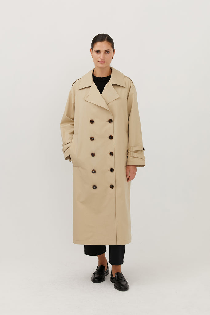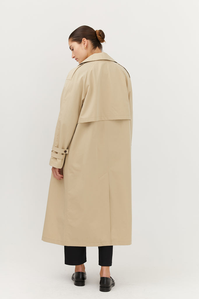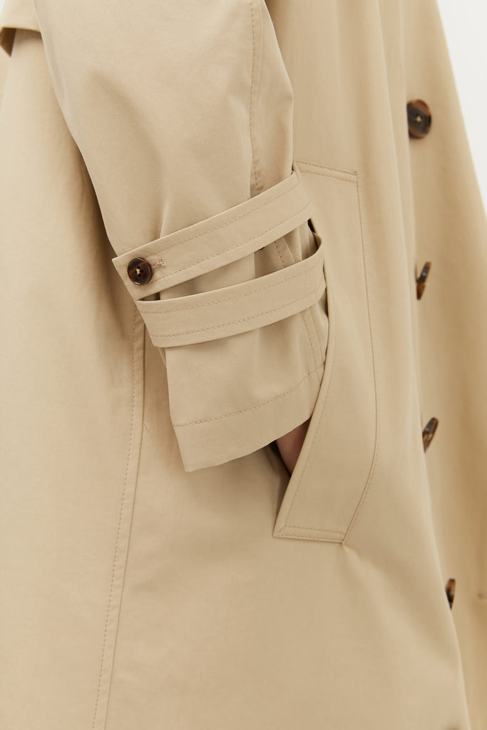Introducing the Trench Coat LENA, a collaboration with Vienna-based creative Lena Maria Seifert. Crafted from 100% organic cotton, this coat offers a modern, slightly oversized twist on the timeless trench silhouette. In line with our commitment to sustainability, every detail has been thoughtfully considered: the biodegradable buttons are made from byproducts of the daily industry, and the fabric is woven to be naturally water-resistant without the use of synthetic coatings.