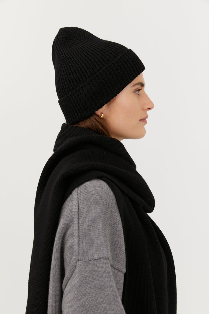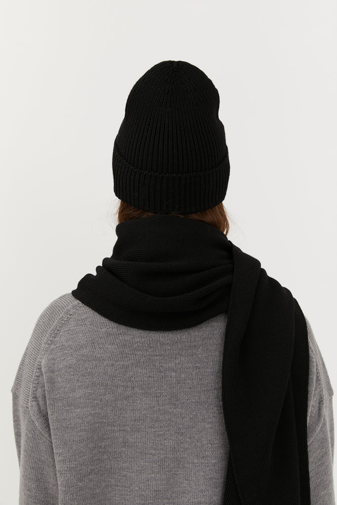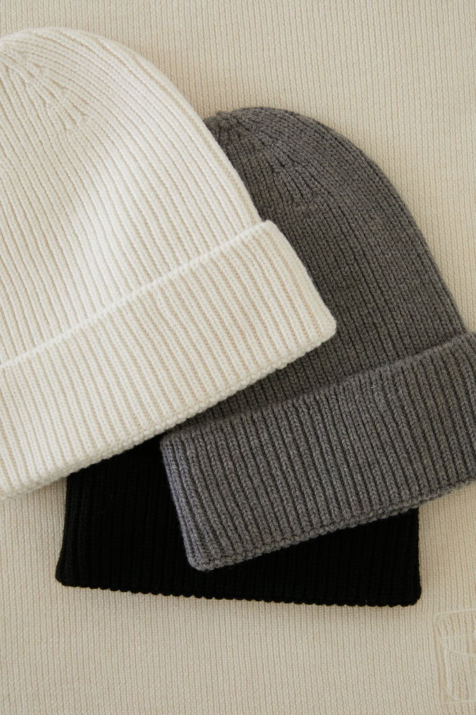 This classic beanie features a ribbed structure and a wide fold. It is made from 100% Italian extrafine merino wool yarn for comfort and warmth. Make it a set by adding the matching knitted scarf and mittens to get 15% off!