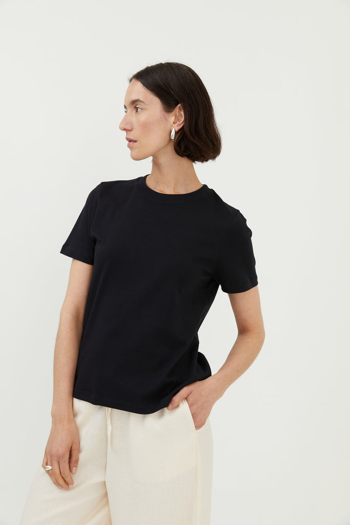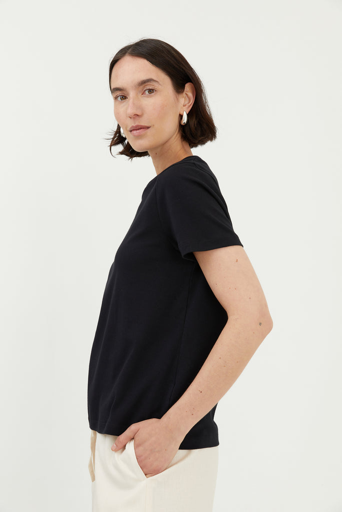 It doesn't get more classic than this. This is a relaxed fitting, short-sleeved T-Shirt with a ribbed crew neckline. It consists of a soft interlock jersey fabric, crafted from 100% organic cotton. A staple in every wardrobe.