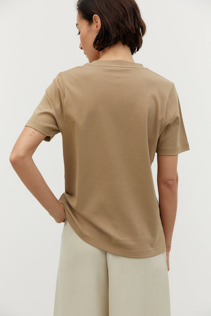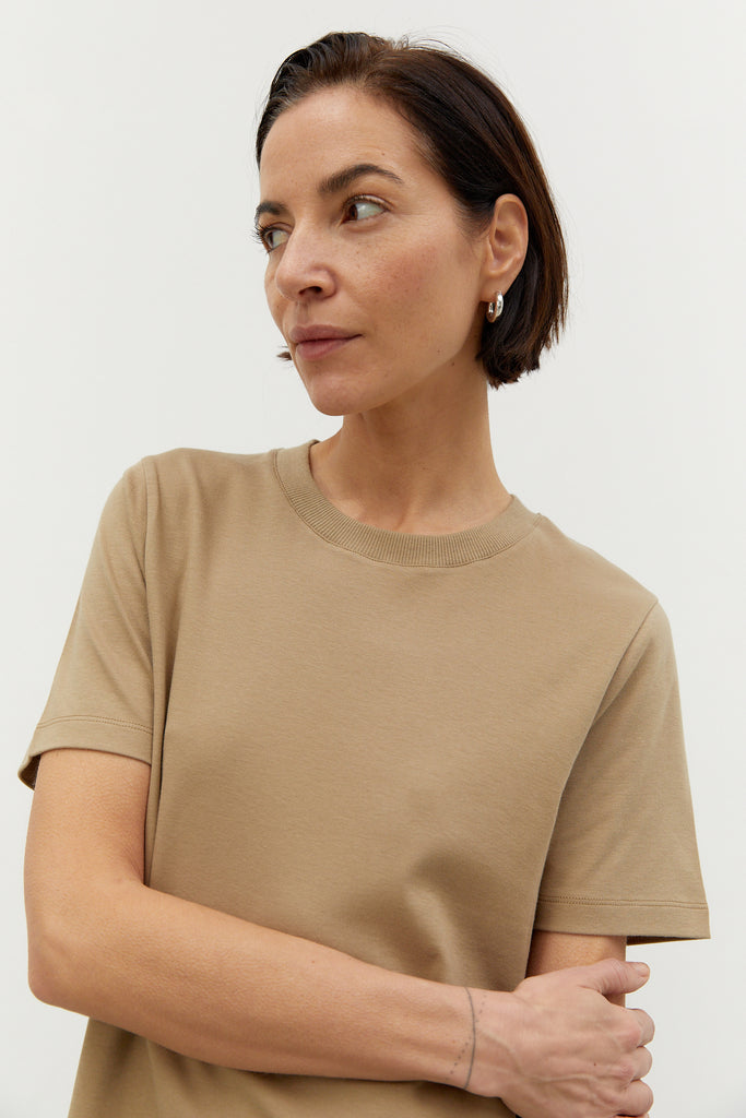 It doesn't get more classic than this. This is a relaxed fitting, short-sleeved T-Shirt with a ribbed crew neckline. It consists of a soft interlock jersey fabric, crafted from 100% organic cotton. A staple in every wardrobe.