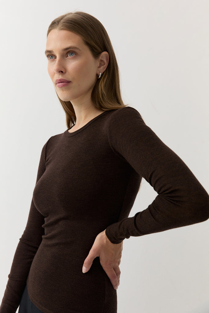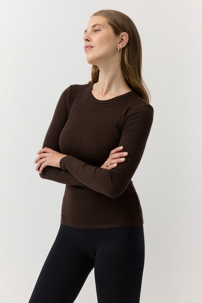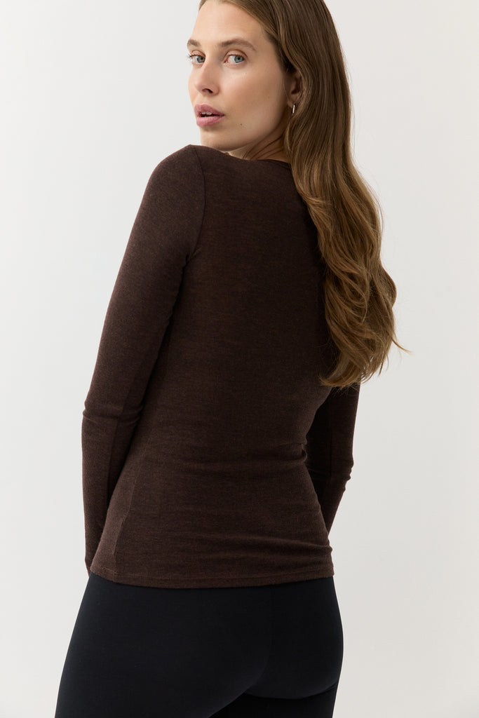 A soft base layer made from extra-fine merino wool. The 1x1 rib structure gives this long sleeve a smooth surface with gentle elasticity that moves with the body. Soft 19.5-micron fibers provide natural warmth and comfort against the skin, while maintaining breathability and moisture control.