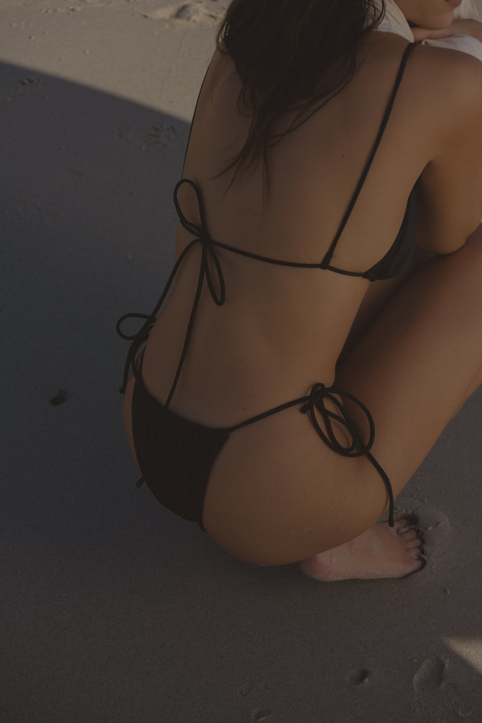 This sustainable triangle bikini top features adjustable self-tie straps. Ideal for tanning: You can ruche the bikini top to your liking, giving you a versatile custom fit. It is fully lined and crafted from ECONYL® regenerated Nylon and elastane for an exceptionally soft and luxurious feel.