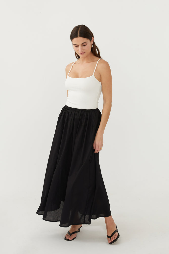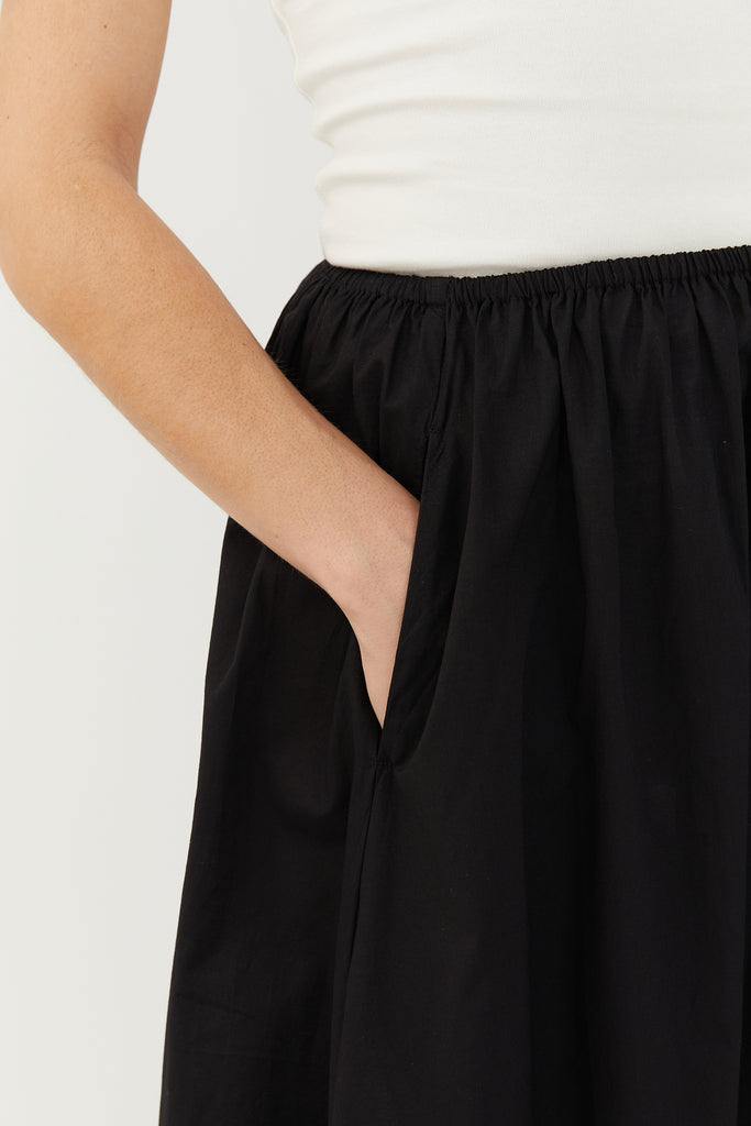 Elevate your wardrobe with our Gathered Midi Skirt, made in India from soft 100% organic cotton. This A-line skirt offers a comfortable elasticated waistband, providing a secure yet flexible fit that can be worn at the waist or hips. The subtle gathers add a touch of volume and movement, while two side seam pockets offer functionality. The breathable and light fabric makes this midi-length skirt ideal for warm weather, offering a breezy feel. Enjoy a versatile piece that combines comfort and style, perfect for any occasion.